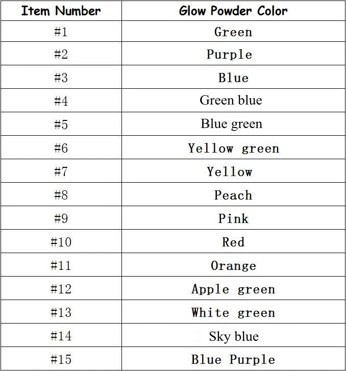 Glow-in-the-dark nail glitter powder that emits a luminous effect in low-light conditions. This phosphorescent pigment delivers vibrant, long-lasting color with a striking luminous finish. Available in 15 stunning shades to suit any nail design preference. Each 10g jar provides ample product for multiple applications. Perfect for creating eye-catching nail art that transitions beautifully from day to night wear.